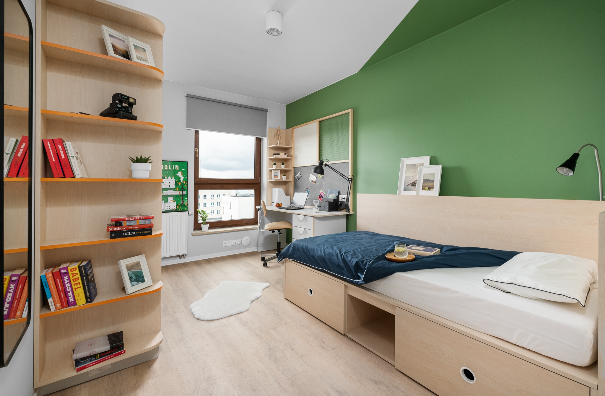 W prywatnym akademiku Student Depot w Lublinie możesz zamieszkać w pokoju jedno- lub dwuosobowym z kuchnią i łazienką. Pokoje zostały zaprojektowane jako wygodne i niezależne mieszkania dwu- lub czteroosobowe. Znajdziesz w nich wszystko, co jest niezbędne, żebyś poczuł się komfortowo, a jednocześnie blisko studentów z całego świata, którzy chętnie mieszkają w akademiku Student Depot w trakcie studiów lub programu Erasmus w Lublinie.