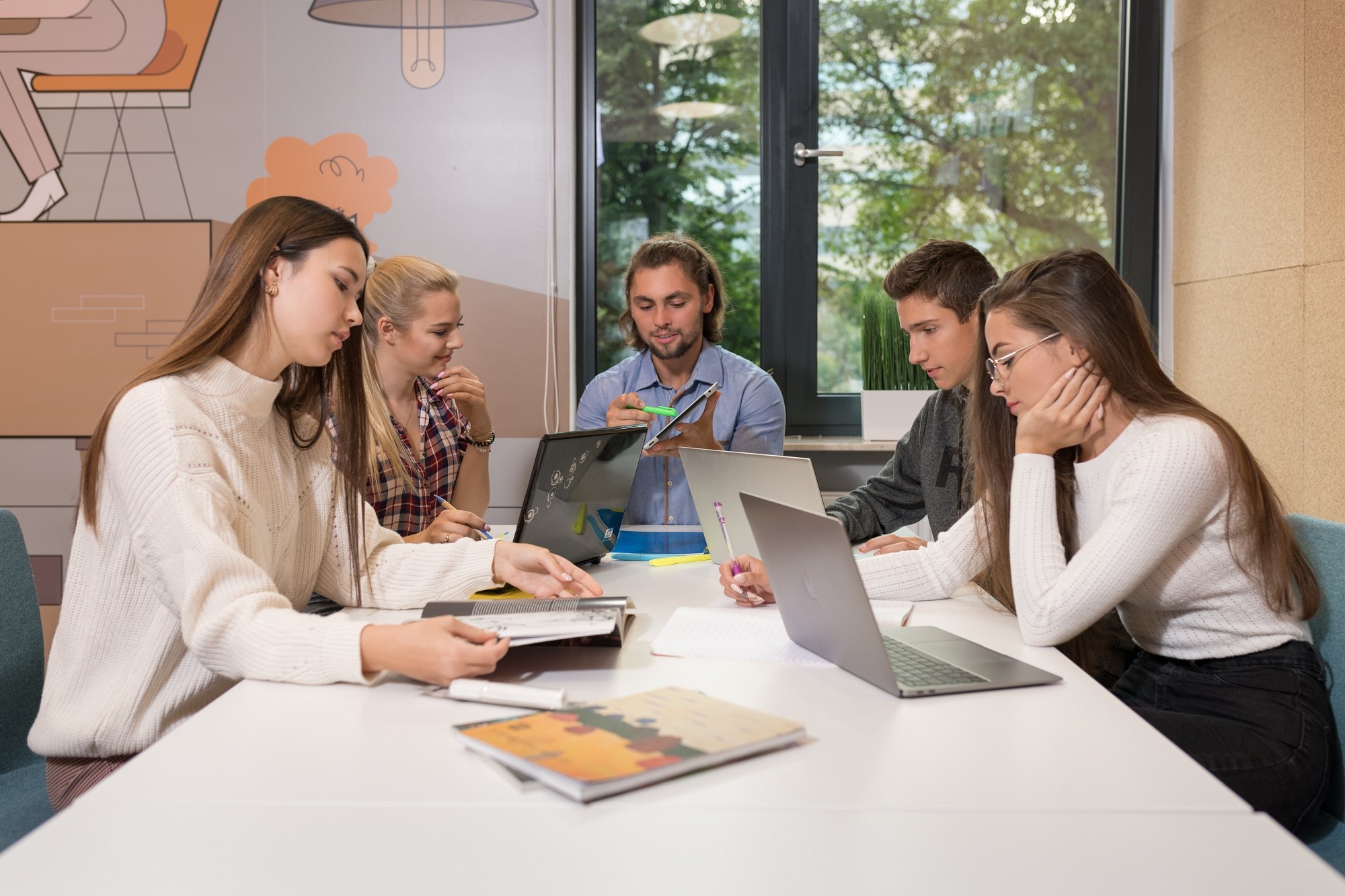 Ucz się tak, jak lubisz i wtedy, kiedy tego potrzebujesz. Do dyspozycji masz własny pokój oraz strefę cichej nauki, dostępną 24/7 - idealną do skupienia i pracy indywidualnej lub w małych grupach.