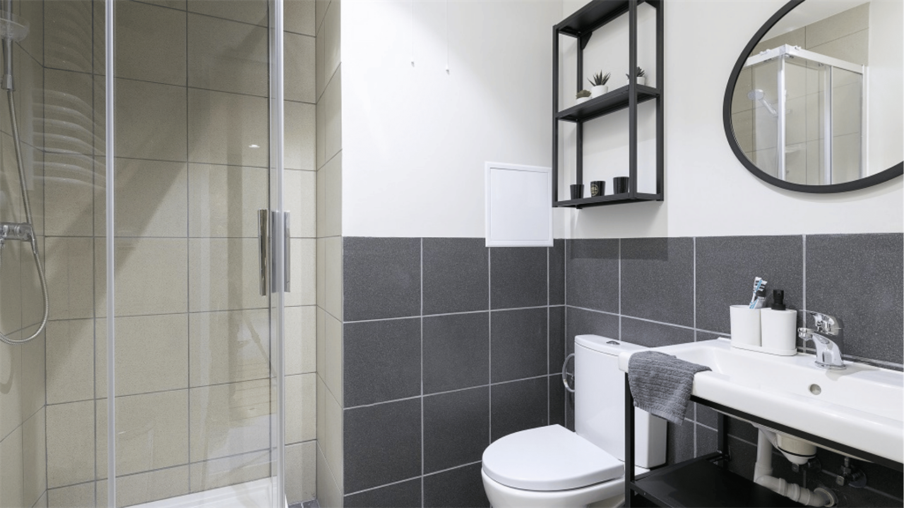 Do dyspozycji masz dużą, oddzielną kuchnię z nowoczesnymi meblami, lodówką, płytą elektryczną i stołem, przy którym można wspólnie zjeść albo pogadać z sąsiadami. A jeśli chodzi o łazienkę – jest wygodna i wyposażona w prysznic, lustro oraz praktyczne miejsce na ręczniki i kosmetyki.